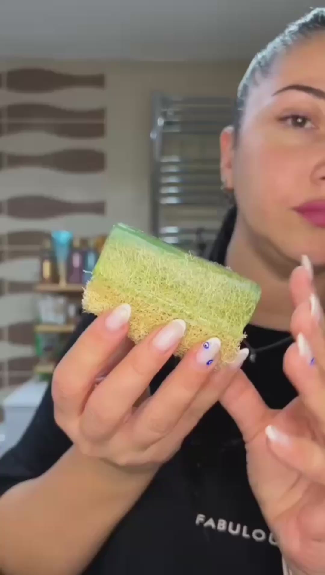 Exfoliation Douce et Naturelle– Nettoie en profondeur et élimine les cellules mortes avec la fibre végétale de luffa.